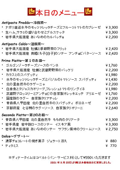 本日のメニュー
